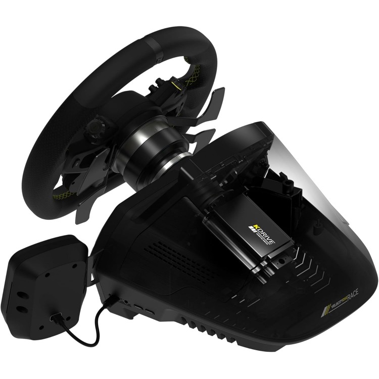 اتصال با کابل USB - شامل فرمان، داشبورد، جعبه کنترل و پدال - مناسب برای شبیه‌سازهای حرفه‌ای - سازگار با ویندوز و ایکس باکس - دارای شیفترهای پدال مغناطیسی - دارای واحد کنترل مدولار برای سیستم‌ها و تنظیمات حیاتی خودرو - مناسب برای PC, Xbox One, Xbox Series X, Xbox Series S