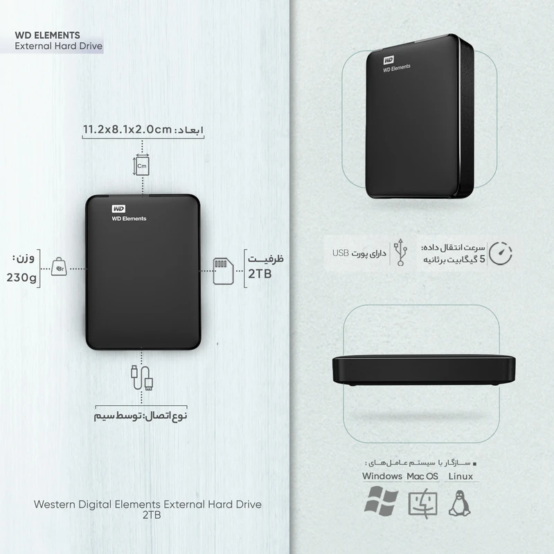 توضیحات تکمیلی هارد اکسترنال استوک 2 ترابایت وسترن دیجیتال مدل Western Digital Elements 2TB