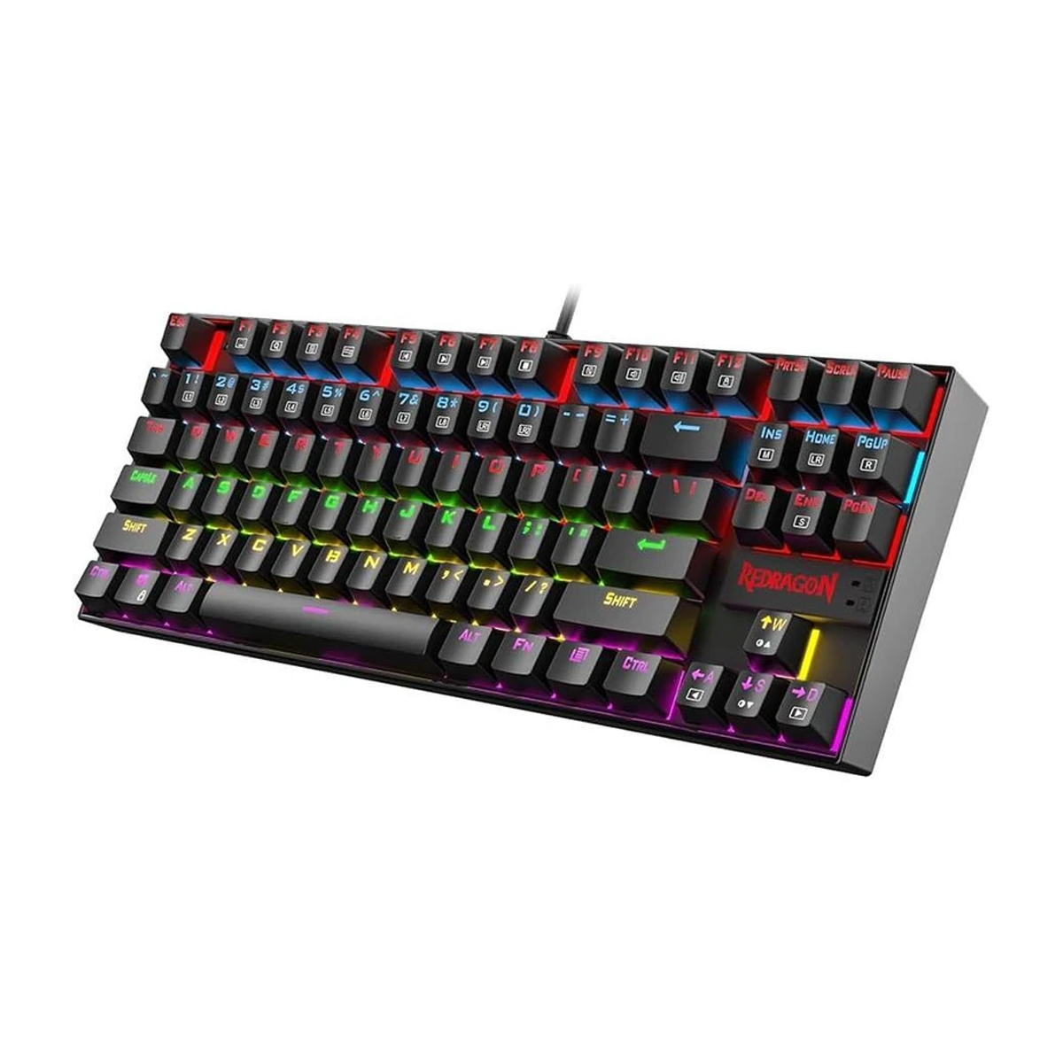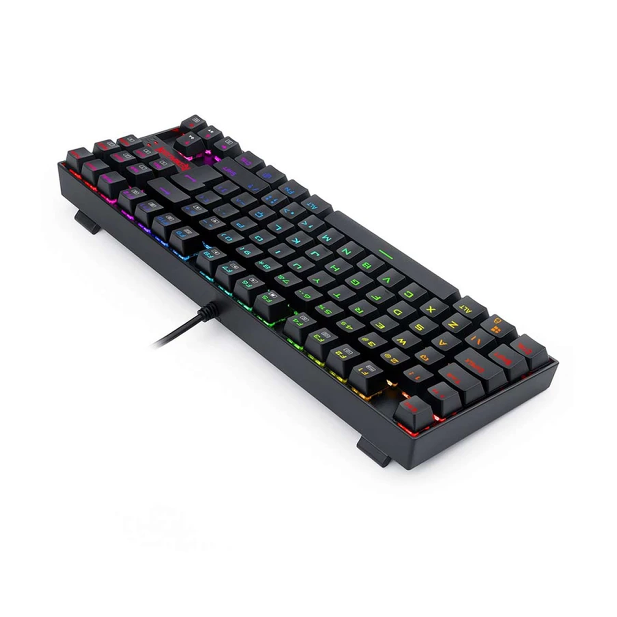 نور قابل تنظیم RGB - پشتیبانی از سیستم عامل Windows , macOS - جنس بدنه پلاستیک فشرده - مقاوم در برابر رطوبت - قابلیت شخصیسازی توسط اپلیکیشن اختصاصی Redragon Zone - تعداد کلید 87 عدد - طول کابل 180 سانتی متر