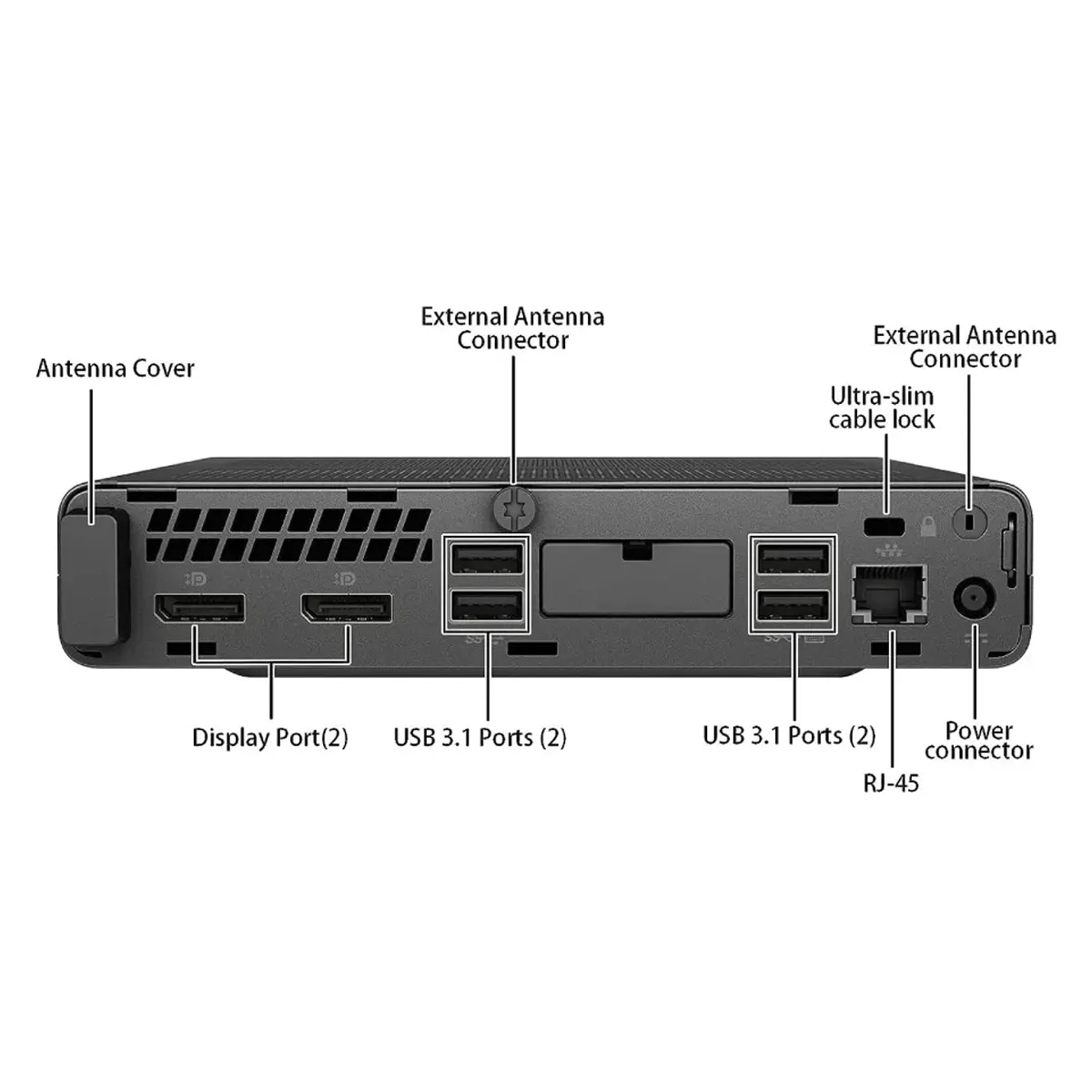 1xLAN, 6xUSB 3.1 , 1xHDMI, 2xDisplay, 1xUSB-Type C, 2xHeadphone/Microphone Combo jack